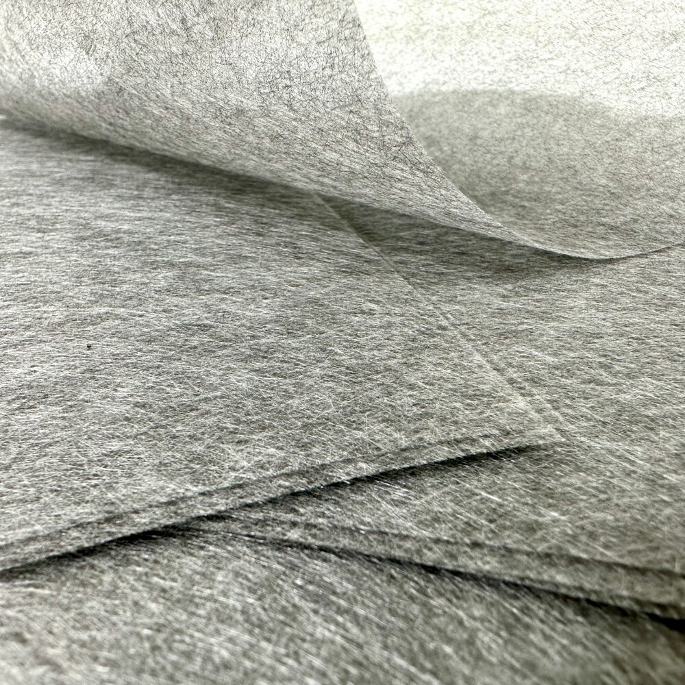 This is a 10g to 80g/m2 mixed fiber mat produced by wet pulping process with glass fiber and carbon fiber in different proportions. The finished product is evenly fused, aesthetically pleasing in shape, conductive, chemically resistant and capable of static electricity dissipation.