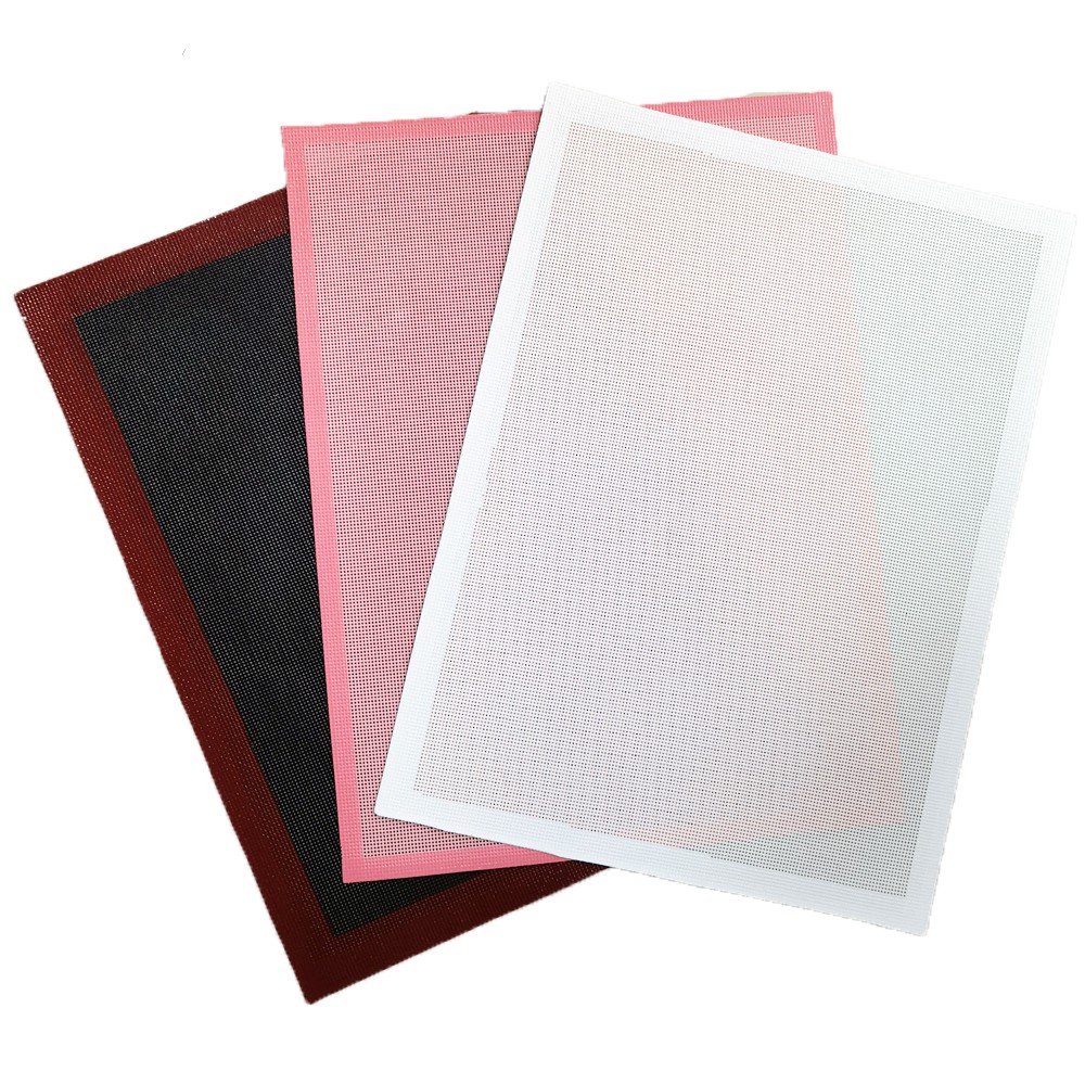 This is a silicone baking pad with perforated mesh, which is produced by impregnating fiberglass mesh with food-grade silicone in black, rust red, brown, white, pink and other colors, and processed in a solvent-free drum vulcanizing machine at a steel belt pressure of 10KPA and a high temperature of 160℃. When used in conjunction with baking trays, the baking pads in the oven are breathable and oil-permeable, ensuring uniform baking temperature. This results in food being cooked with less oil and a more fragrant taste. It can also be used as a food preservation pad in the refrigerator. Passed FDA, LFGB, DGCCRF and FPAS tests, free of bisphenol A.